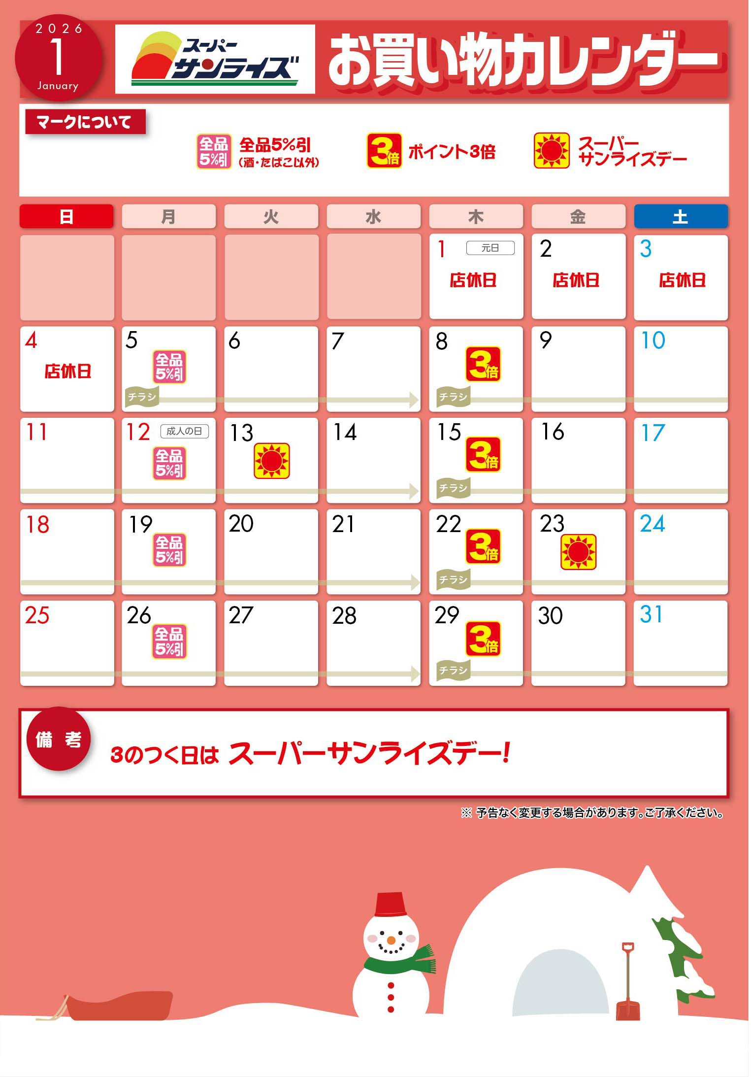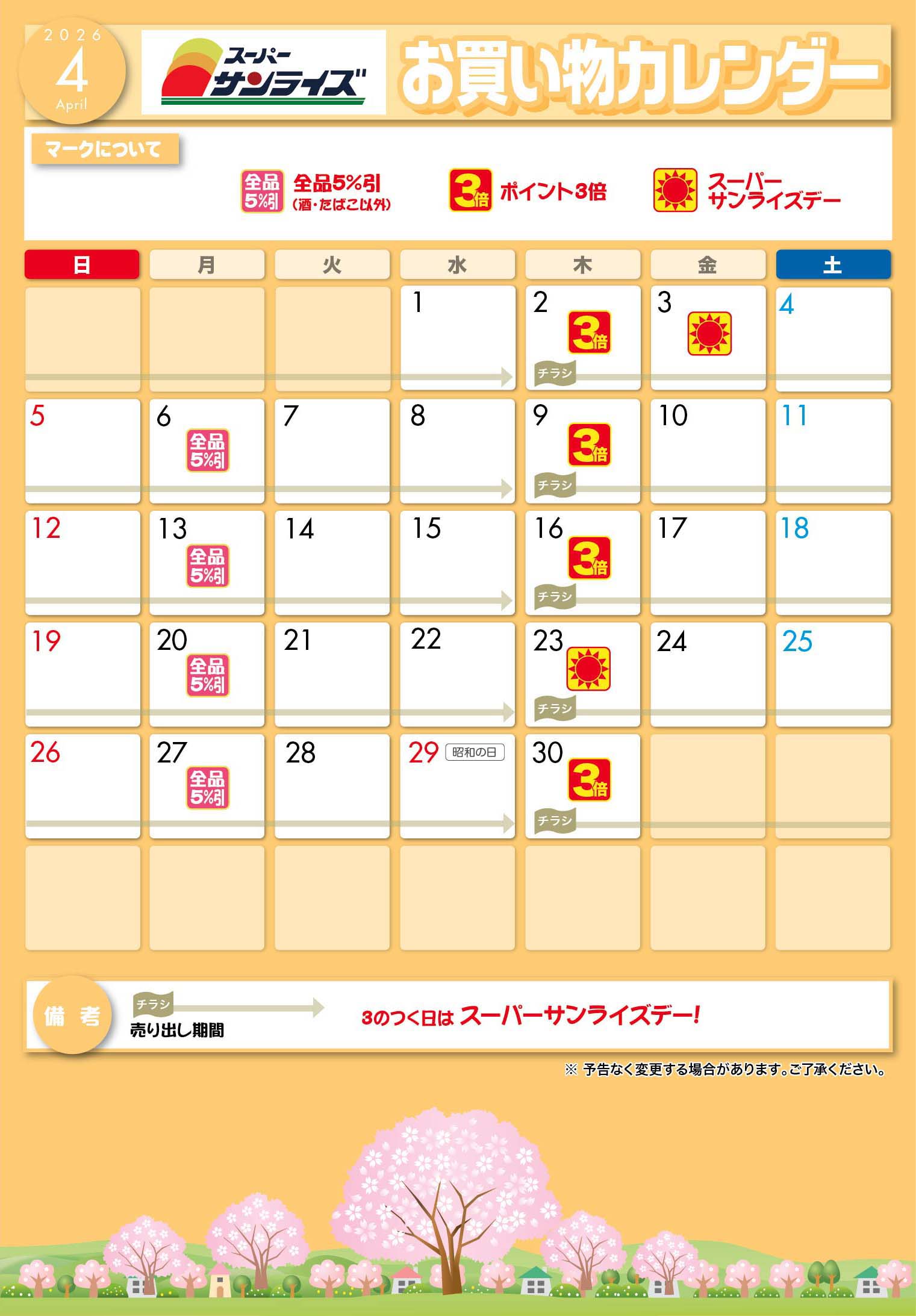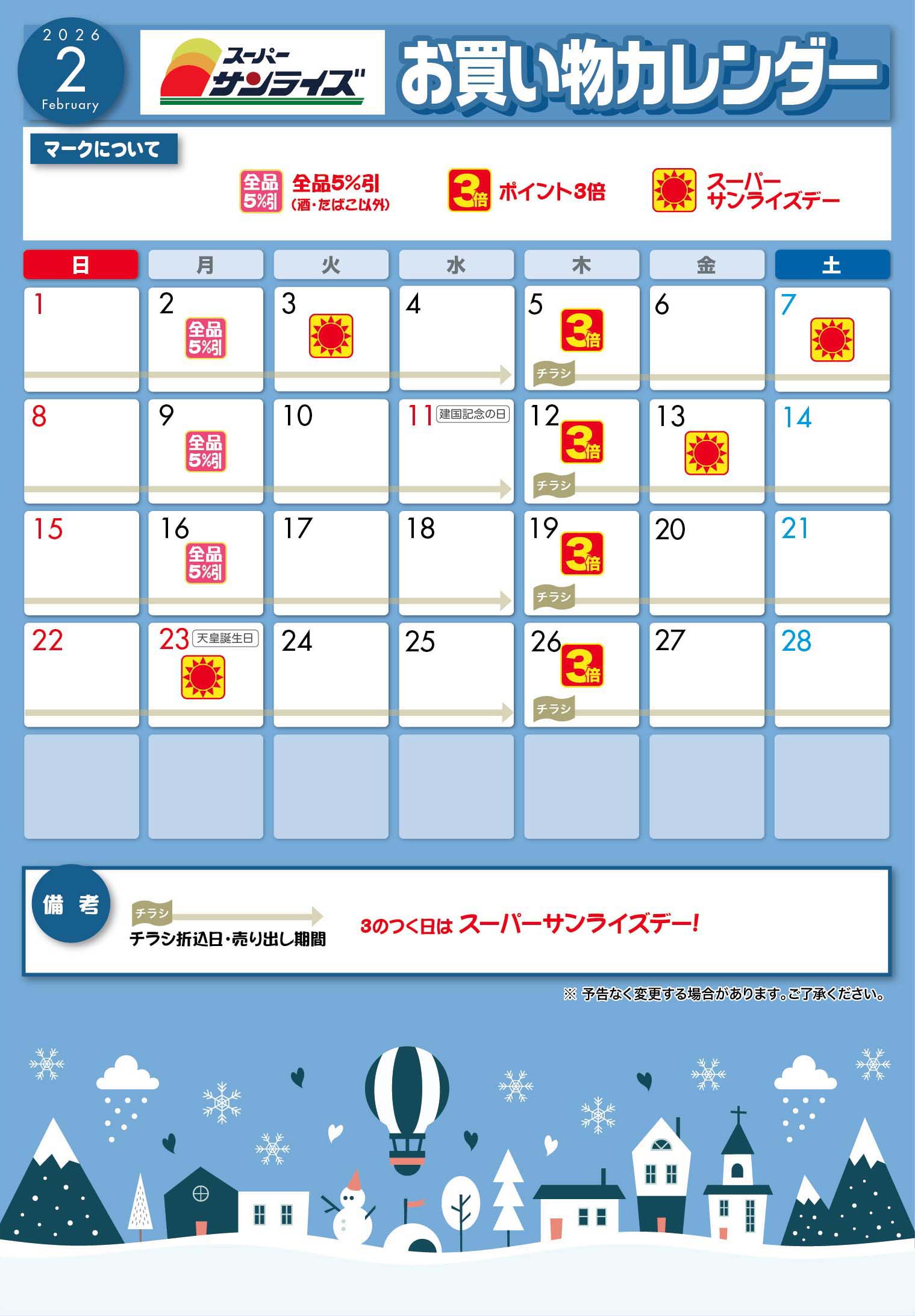 サンライズお買い物カレンダー